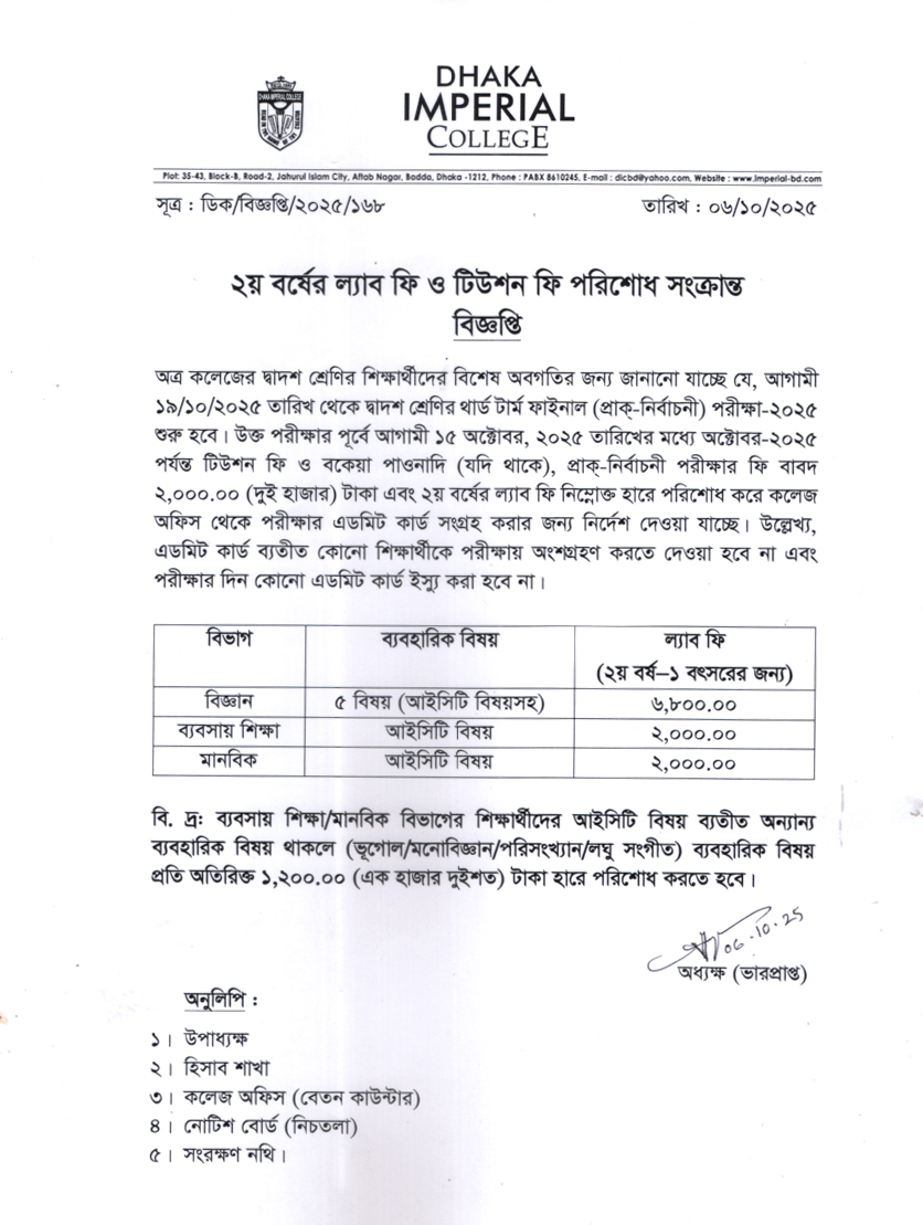 দ্বাদশ শ্রেণির ল্যাব ফি পরিশোধ সংক্রান্ত নোটিশ Share this:Click to share on Twitter (Opens in new window)Click to share on Facebook (Opens in new window)Click to share on Google+ (Opens in new window)Like this:Like Loading... Related October 6, 2025 | Notice Board |