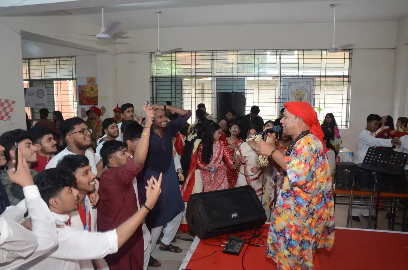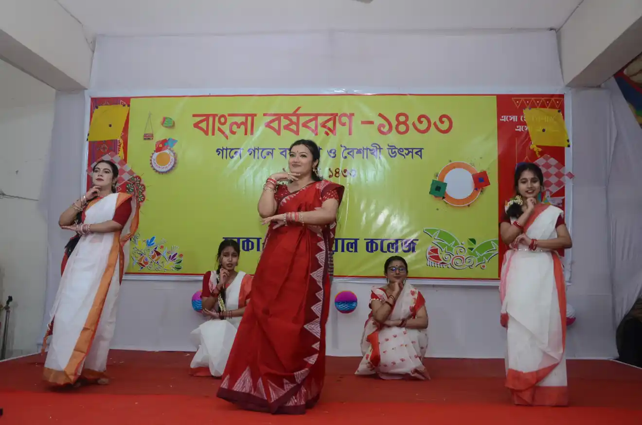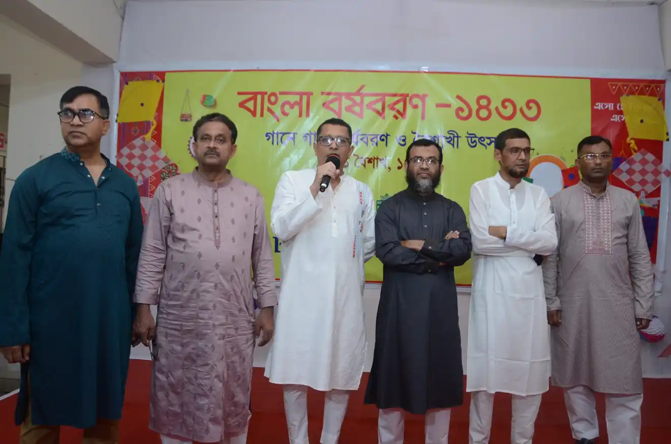 প্রেস বিজ্ঞপ্তিঃ বাংলা বর্ষবরণ-১৪৩৩ উদ্যাপন : আজ কলেজ ক্যাম্পাসে জাকজমকপূর্ণ ও আনন্দমুখর পরিবেশে উদযাপন করা হয় বাংলা বর্ষবরণ-১৪৩৩। কলেজ অধ্যক্ষ (রুটিন দায়িত্ব) মোহাম্মদ দেলোয়ার হোসেন মৃধা এর সভাপতিত্বে উক্ত অনুষ্ঠানে অতিথি হিসেবে উপস্থিত ছিলেন কলেজ গভনিং বডির সম্মানিত অভিভাবক প্রতিনিধি জনাব এ. কে.এম. জিয়াউল হাসান,জনাব মোঃ আবদুছ ছবুর ফরহাদ, জনাব মোঃ আব্দুল আউয়াল। আরও উপস্থিত ছিলেন রসায়ন বিভাগের সহযোগী অধ্যাপক অনীল চন্দ্র নাথ, বাংলা বিভাগের সহযোগী অধ্যাপক ও ক্লাব পরিচালক মোঃ ফয়সাল বার্ক এবং বৈশাখি মেলার আহ্ববায়ক দেবাশিষ কুমার ধর।